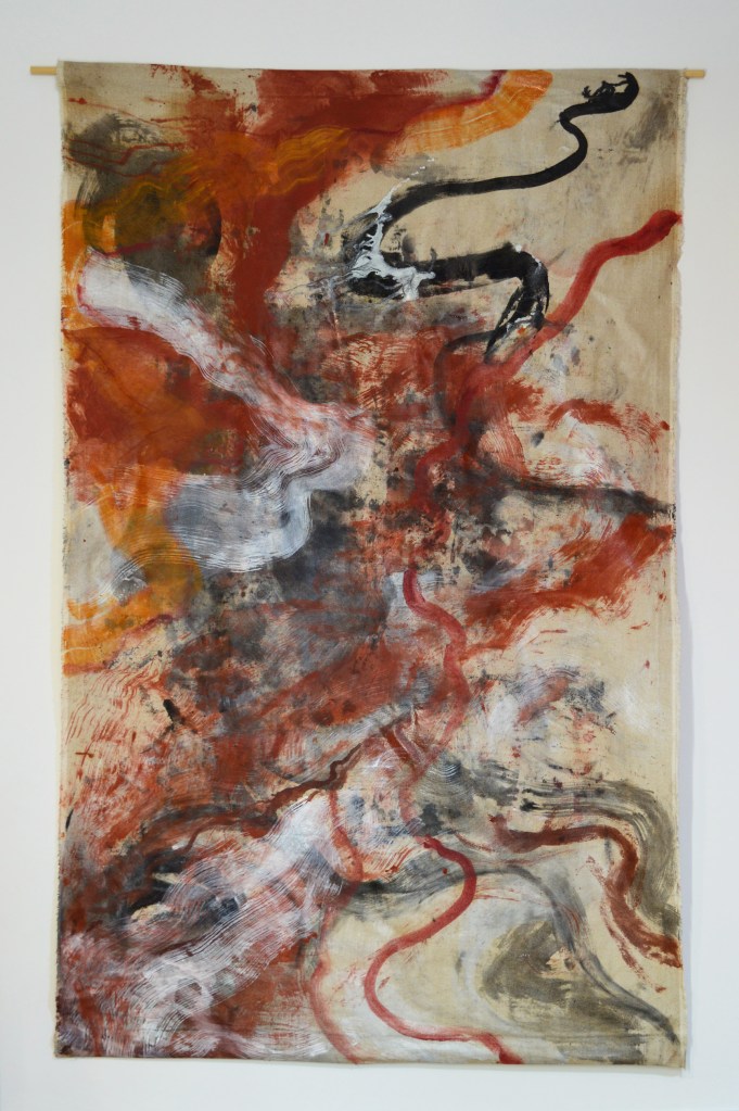 ‘5 feathers of the phoenix’, 2024, xylography on paper, 5x(69 x 135 cm).